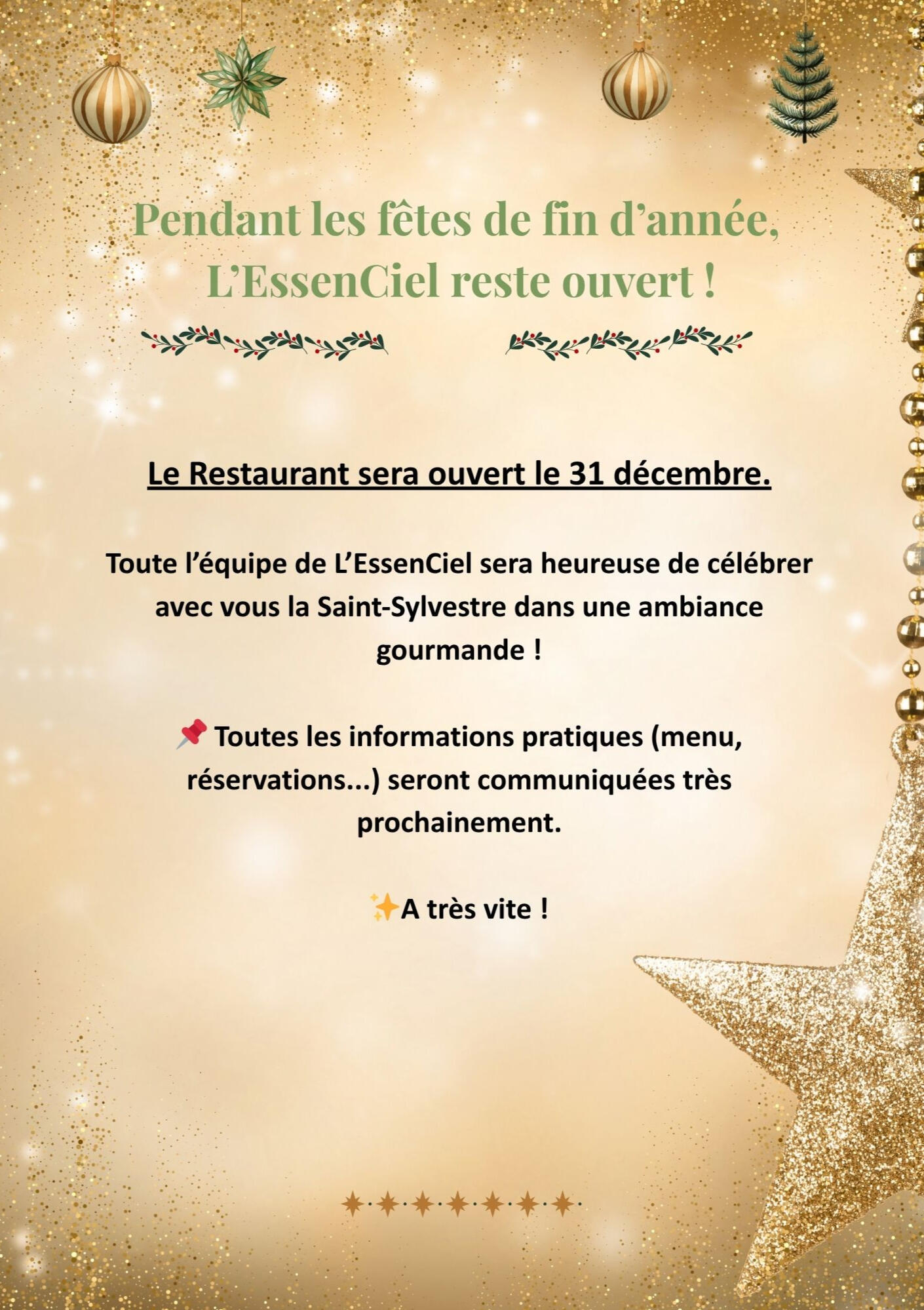 - Et une soirée du 31 décembre que nous vous promettons chaleureuse, gourmande en notre compagnie !👉 Toutes les infos arrivent très bientôt… restez connectés !