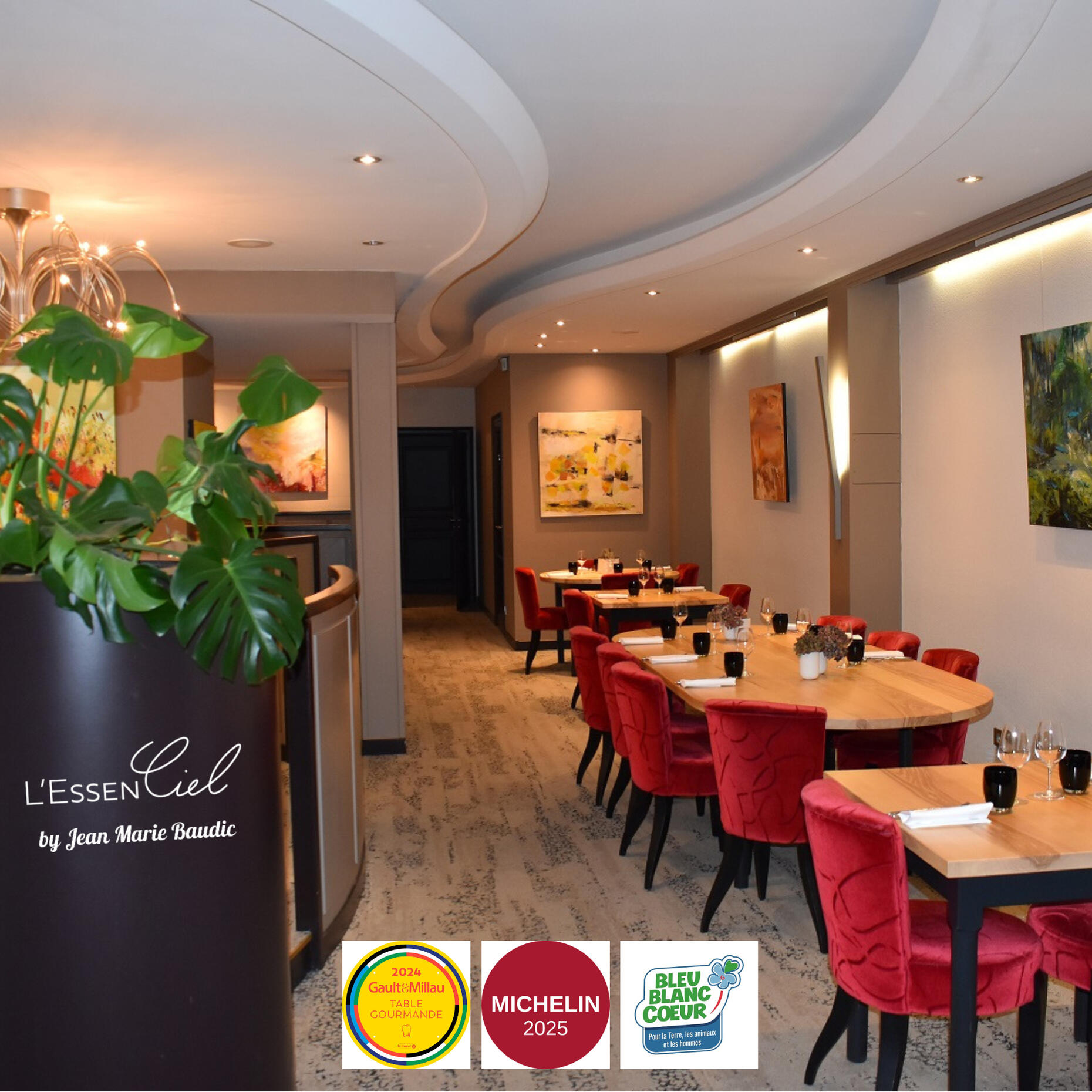 L’EssenCiel, une table enracinée dans son terroir.À Fougères, L’EssenCiel by Jean-Marie Baudic porte la signature d’un chef étoilé reconnu, qui accompagne une jeune équipe talentueuse pour faire vivre une cuisine de saison, sincère et inspirée. Aux fourneaux, le chef Clément Tarin, et en salle, Geoffrey Belhache, vous accueillent avec générosité et attention.Engagé dans la démarche Bleu-Blanc-Cœur, L’EssenCiel met à l’honneur des produits locaux de qualité, dans le respect du goût, de la terre et de ceux qui la cultivent.Guide Michelin, Gault & Millau, L’EssenCiel se veut une adresse accessible, ancrée dans le territoire fougerais, qui fait rimer terroir, modernité et convivialité.